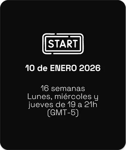 Todas las sesiones son online y en vivo, generalmente de 19h a 21h (GMT-5).