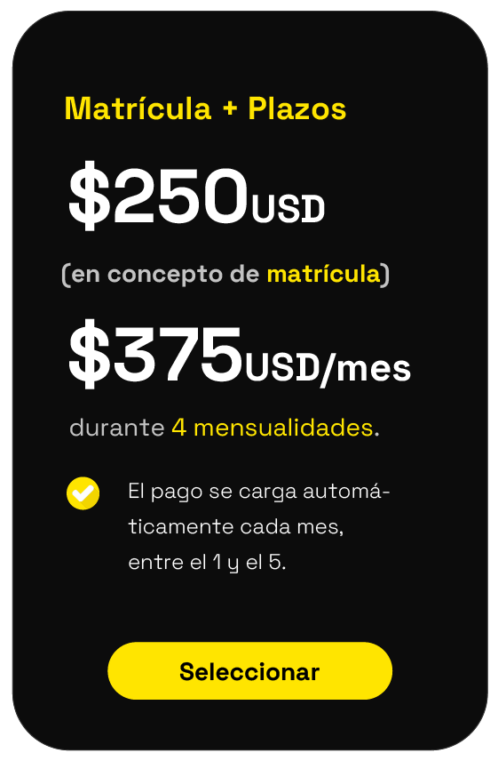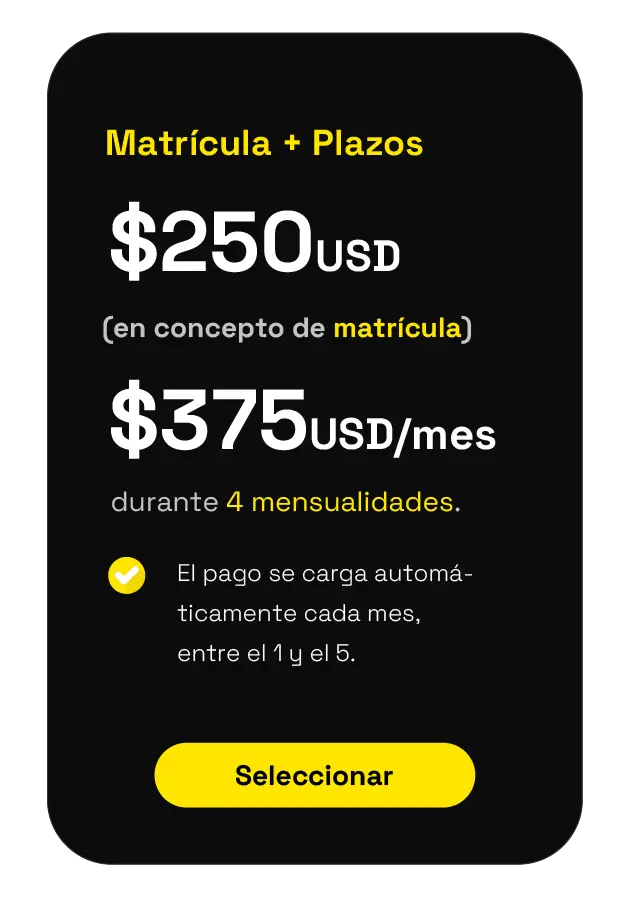 El proceso incluye completar tu inscripción y confirmar tu plaza mediante el pago de la matrícula.