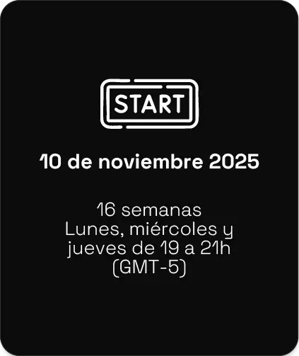 Puedes inscribirte directamente desde la web del curso. Antes de matricularte, asegúrate de revisar todo el calendario, etapas, requisitos y proceso de selección.Si tienes cualquier duda, puedes escribirles a [email protected] para que te asesoren antes de tomar la decisión
