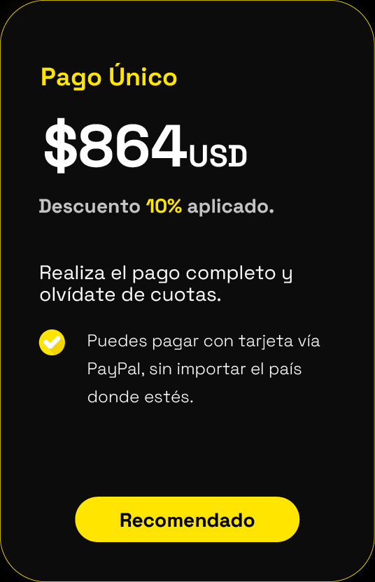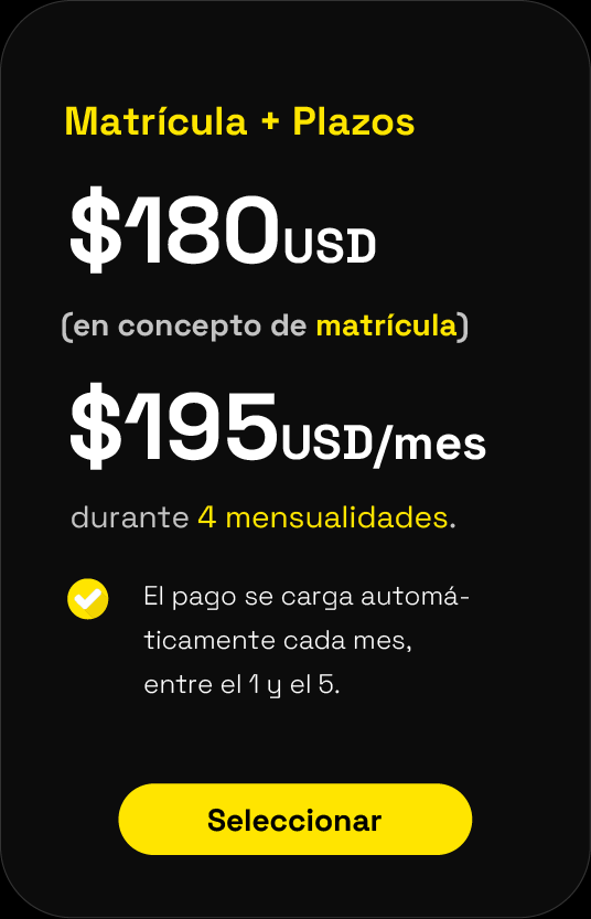 Elige la opción de pago que mejor se adapte a ti y asegura tu plaza en el curso.